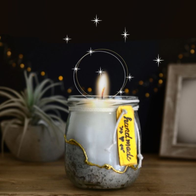 Mit dieser ausgefallenen Kreatividee kombinierst Du den rustikalen Stil des Betons mit filigranem Glamour. Durch das Auftragen der Metallicfolie erhält Deine Betonkerze im Glas eine